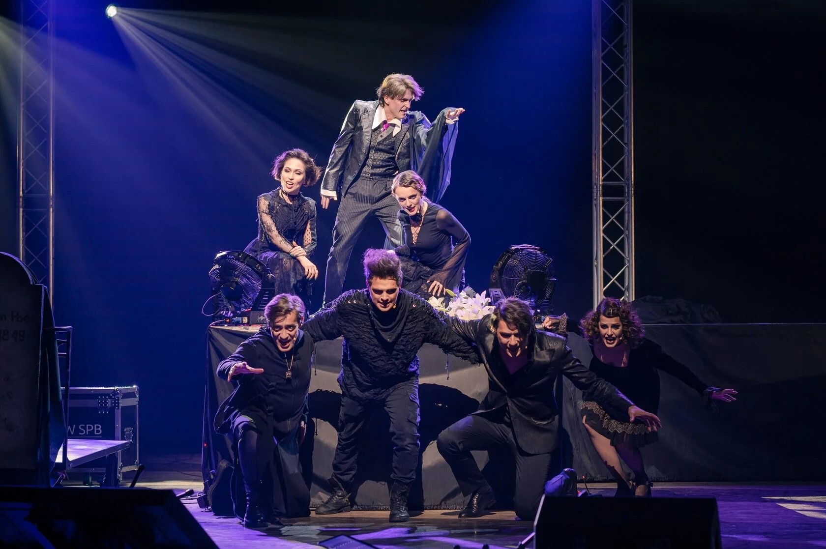 Артисты мюзикла, помимо самого Ярослава в роли Эдгара По, это: Кирилл Гордеев, Владислав Кирюхин, Эмиль Салес, Анна Тесс, Наталья Фаерман и Юлия Чуракова. Они коротко в дидактической манере рассказывают о несчастном мальчике, на жизненном пути которого с раннего детства подстерегали одни потери, о безумии и гениальности, идущих рука об руку, о несправедливости и несчастье… При этом, конечно, все поют, и поют великолепно.