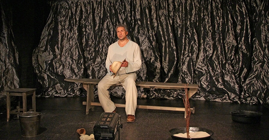 Эрнеста Хемингуэя я очень люблю (хоть и давно не перечитывала — надеюсь, это была не только юношеская любовь), поэтому решила сходить посмотреть, что сделают с этим текстом. Моноспектакль — формат очень опасный, потому что есть риск скатиться в читку. Сцена в этом пространстве совсем крошечная. Понятно, что никаких масштабных декораций нет (художник — Максим Обрезков), а только отдельные предметы быта и то ли скамейка, то ли лодка (как ее повернуть, так и кажется).