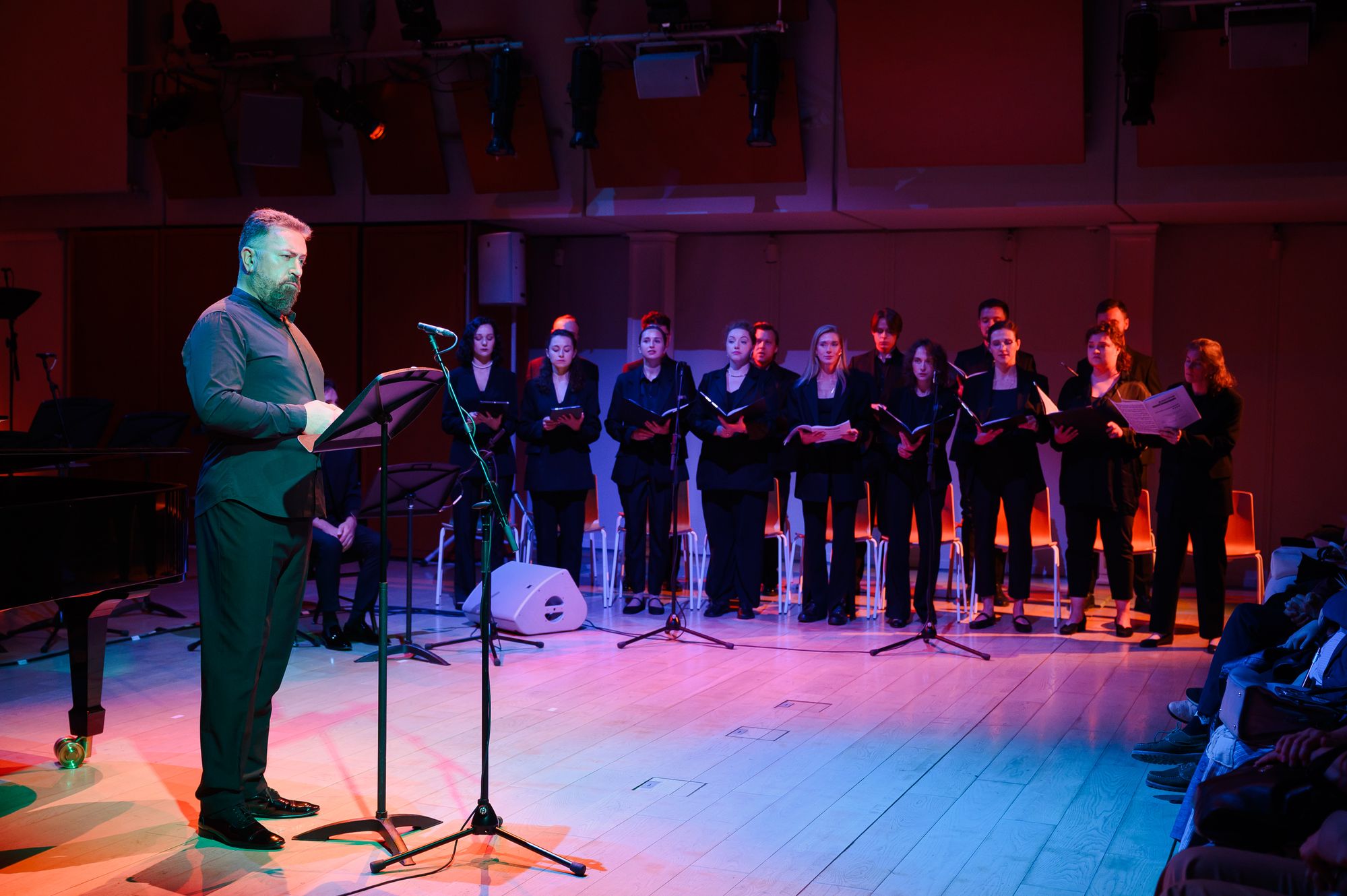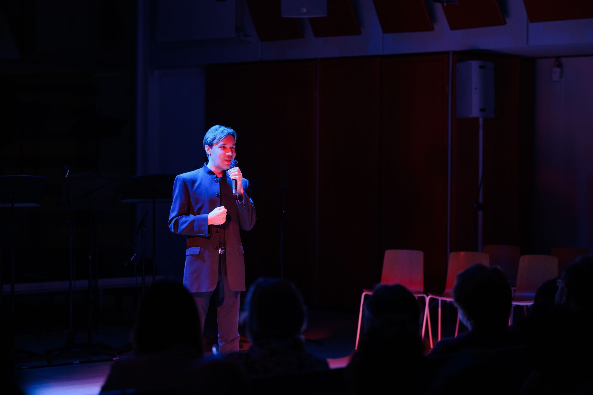 Следом прозвучали «Воспоминания о Мюнхене» (1885-1886) Эммануэля Шабрие, вновь для фортепиано в четыре руки. Любопытно, что в оригинале оба сочинения названы аналогично: «Souvenir de la Russie» и «Souvenirs de Munich», а традиции русского перевода разнятся. Здесь можно предположить ловушку для составителей программы начать собирать коллекцию «сувениров/воспоминаний», и добавить, как минимум, пятиминутные «Souvenirs de Bayreuth» Форе и Мессаже — фантазию на темы из «Кольца нибелунга», раз кадриль по «Тристану и Изольде» уже есть. Но этого не происходит, у концерта другие задачи и более тонкая комбинаторика. Поэтому после предельных скоростей Шабрие (кажется, станцевать такую кадриль смогли бы разве что мультяшные персонажи) мы переходим к Шёнбергу и его «Трем сатирам для смешанного хора» (1925). Первые две, «На распутье: тональное или атональное» и «Многосторонность», несмотря на стремящийся уязвлять текст, звучат как абсолют красоты, конечно, благодаря вокальному ансамблю Intrada (дирижёр Екатерина Антоненко), а вот третья, самая велеречивая — «Новый классицизм», сквозит некоторым занудством, зато служит идеальным мостиком к кульминации вечера — партсобранию в «Антиформалистическом райке» (1948-1968) Шостаковича. Это сочинение представляется самым концептуально проработанным внутри сатирического наследия композитора и, конечно, наследует «Райку» Мусоргского. Тут вновь можно предположить соблазн включения обоих «Райков» в концерт, тем более, что у Мусоргского критикуется «немецкая партия», очевидно противостояние консервативного и нового – легко протянуть параллели и к Шабрие, и к Шёнбергу. Но баланс программы выстроен иначе, он не сводится к контексту и преемственности, но формирует третье измерение, правомерное только внутри концертного зала. Слушателей ведут по пути из цитат, со строгим соблюдением пропорций инструментального и вокального, закоулками постоянно меняющегося градуса и природы абсурдности. В итоге оказывается, что первые три произведения – это в общем-то музыка «в себе» и «между собой», а вот «Антиформалистический раёк» – уже «вне себя», как минимум потому, что в нем музыкальная и литературная составляющие равнозначны. Литературную частично процитировал Ярослав Тимофеев, а музыкальная была эталонно исполнена ансамблем Intrada, басом Гарри Агаджаняном и пианистом Сергеем Каспровым. Публика реагировала искренним смехом и, смею предположить, разделенным ощущением причастности к камерному райку, где реальность не нивелируется, но становится более сносной благодаря самому мудрому из искусств.