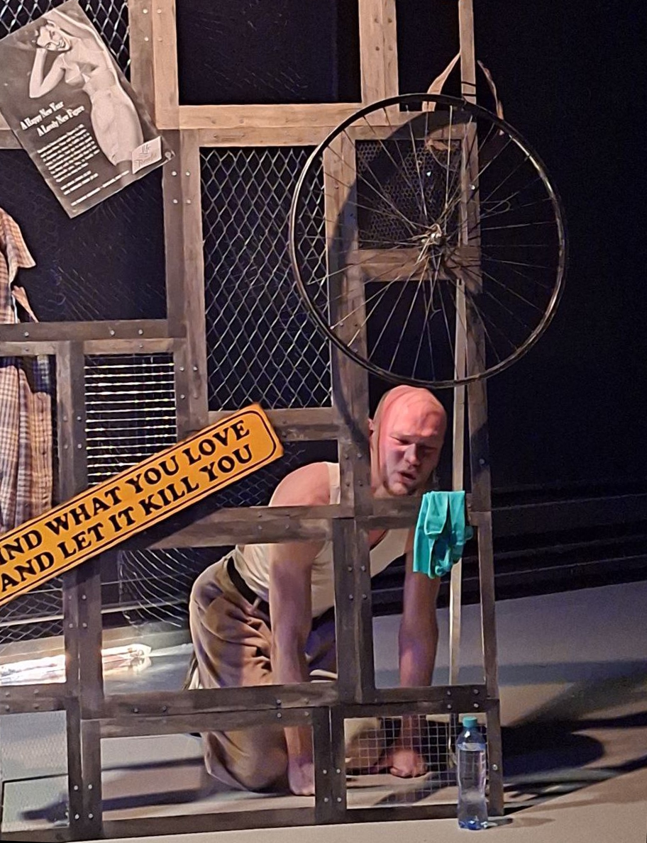 Ставить и играть в спектакле по Чарльзу Буковски — это сплошной вызов. Протест. Это то, о чем говорят мужчины — да и то не всегда, не все и не в каждом кругу. Не готовым к грубым откровениям, юмору на грани фола и историям из жизни сначала социально неприкаянного американца со случайными заработками и связями, а потом всемирно известного писателя — не смотреть! Впрочем, по-настоящему знакомых с творчеством Чарльза Буковски трудно чем-то удивить. Вот порадовать – попаданием в ноту, точно выверенными интонациями – возможно, и это удалось «Парням и велосипедам», актерам Евгению Сиротину, Константину Гаёхе, Владимиру Поднозову, Фиме Осипову, Никите Давыдову и Богдану Саенко.
