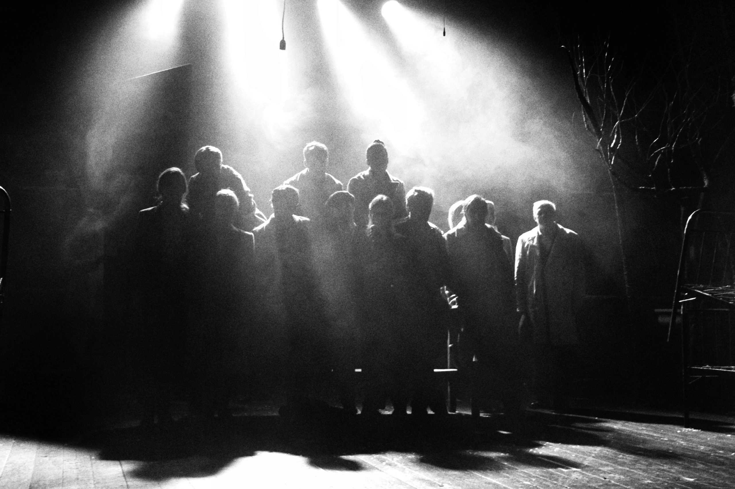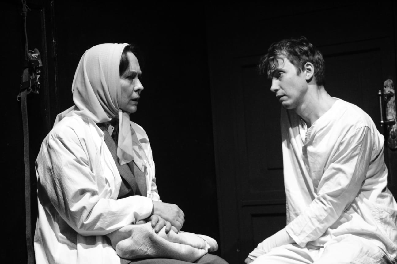 В спектакле появляются и мифологические фигуры — девушка Маша в бинтах, будто сошедшая с витража Марии Магдалины, старичок, нарушивший тайну свидания, сосед с гипсом из госпиталя, уставший военный врач, выписывающий только морфин. Они становятся проводниками печали и надежды, словно ангелы-хранители.