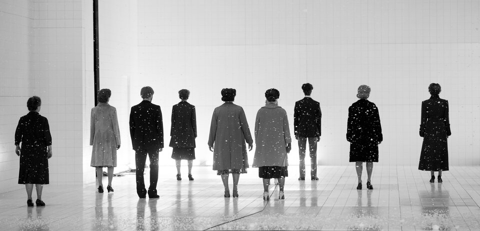 Зато, если вы читали книгу, то будете вознаграждены психотерапевтическим воздействием этой условной драмы, разыгранным не по театральным правилам. Персонажи одеты по моде сороковых, они не меняются внешне, лишь рассказывают/показывают трансформацию внутреннюю, не избегая неловкости остранения, словно бы принуждая себя говорить, через силу раз за разом прорабатывая травму.
