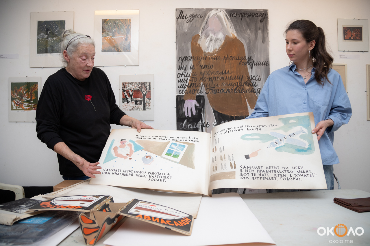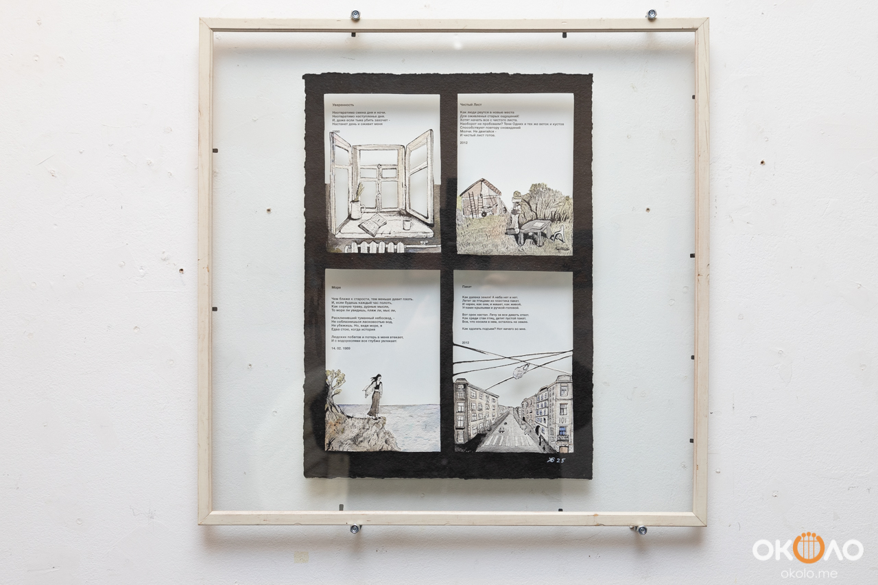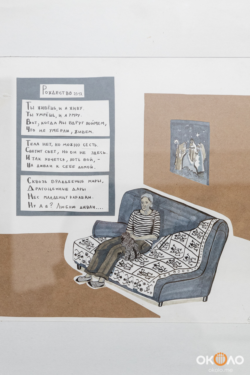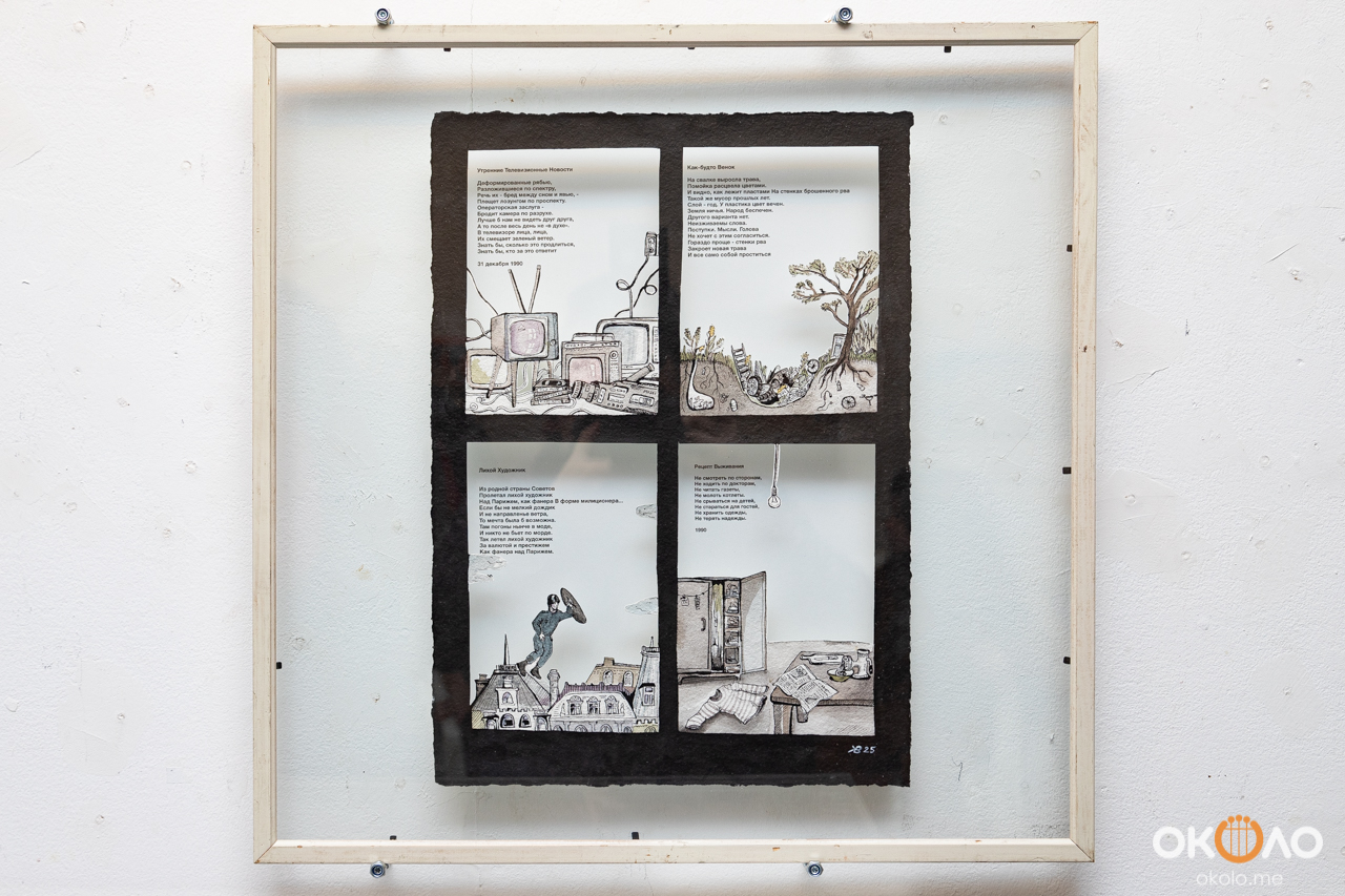 Я заметила неожиданный обмен: старые работы рядом с новыми становятся другими. Эта выставка – не просто ретроспектива, а живое взаимодействие времён и жанров, где каждый объект вступает в разговор с другим, создавая особую ершистую многослойность. В выставке участвуют Александр Позин и Вера Кучеренко. Всё дерево делал Александр Позин. Это – не тумбочки, это – половина скульптуры. Без деревянной части вещи имели бы совершенно другое лицо. Мы сделали последний зал «поэтическим». Вера Кучеренко иллюстрирует мои стихи. Её иллюстрации дали мне возможность прочитать свои стихи совершенно по-другому. Жаль, этого не может сделать великий поэт Олег Григорьев. Надеюсь, ему бы понравилось», — рассказывает о выставке Марина Спивак.