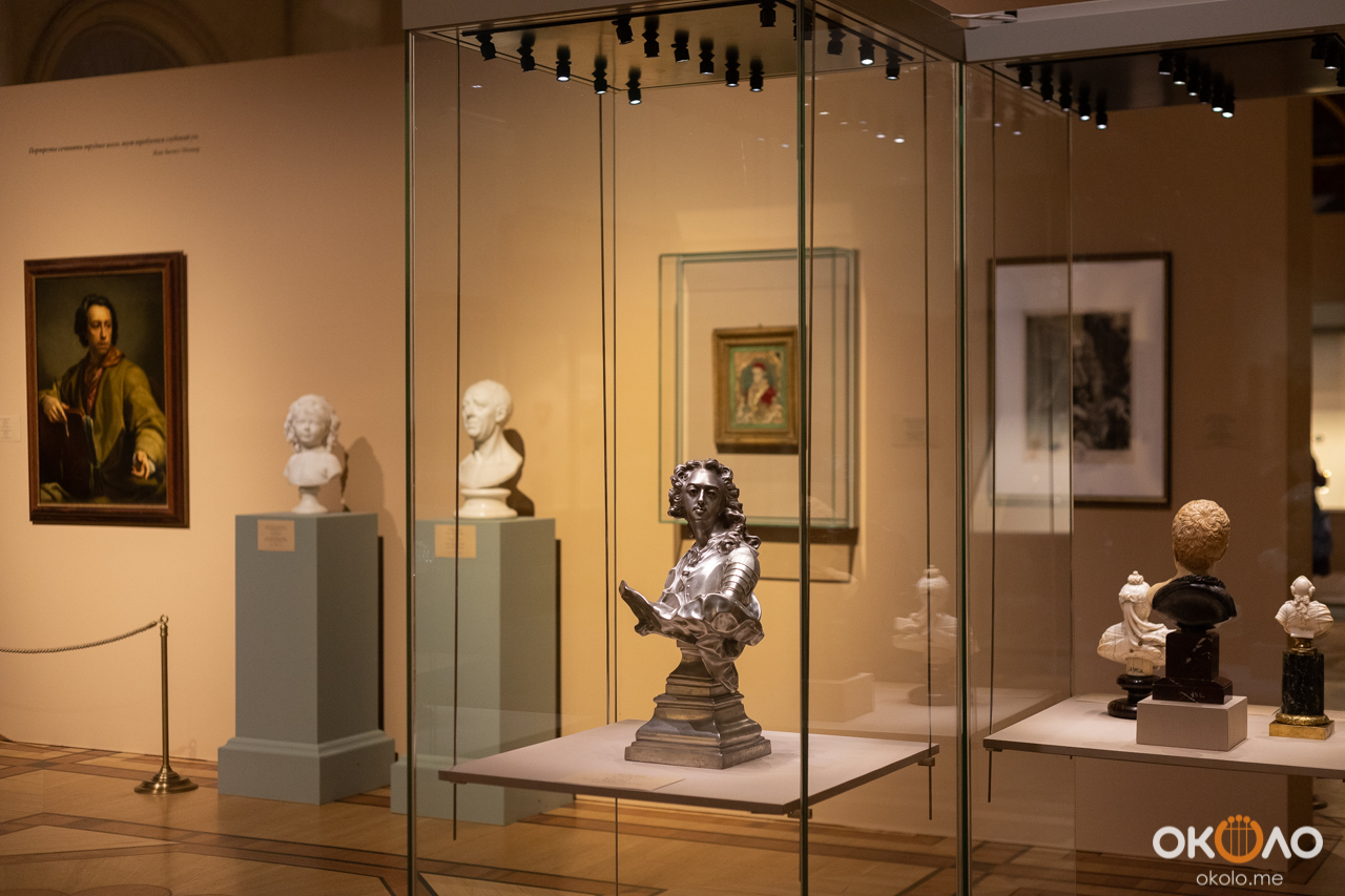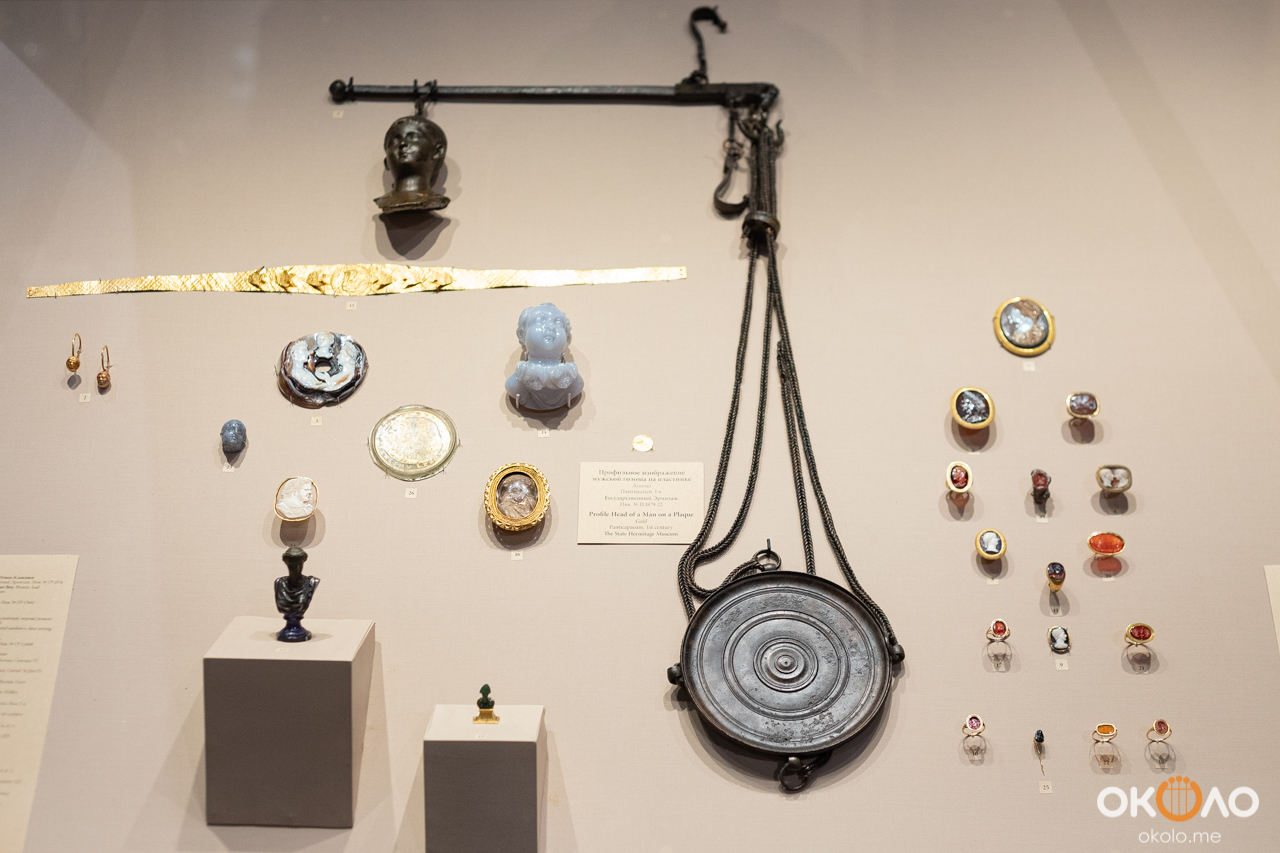 В пределах разделов с левой стороны — линия Востока, с правой стороны — линия Запада. Ну, а Россия, конечно, посередине. В экспозиции 760 объектов. Тут довольно много нумизматики: портреты на монетах — самый достоверный документ: там есть дата, там есть имя. Но, конечно, это и живопись, много живописи, скульптуры, прикладного искусства, миниатюр. Потому что в прикладном искусстве портрет тоже популярный жанр. Коллекция Эрмитажа настолько разнообразна, что она может показать беспрецедентное разнообразие жанра. Это и вазы. Ваза Пикассо, например, в форме человеческого лица и головы. И, как я уже говорила, археология.