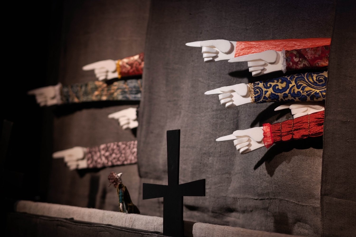 Когда Джульетта готовится выпить яд и отправиться в склеп, перед зрителем впервые открывается живое лицо актрисы — оно становится проводником отчаяния, надежды и любви. Выпив яд, героиня надевает похоронную рамку, но её лицо остаётся живым и страдающим. Так же и Ромео: оказавшись в склепе, он сбрасывает петрушечную маску и превращается в человека. Их диалог в живом исполнении придаёт истории невероятную точность, глубину и человечность. В этот момент спектакль перестаёт прятаться за шутками — наступает самое важное. И здесь любовь действительно побеждает смерть: влюблённые продолжают быть рядом, преодолевая пределы. А парад маленьких кукольных Смертей с косами заканчивается их же взаимной дракой и самоуничтожением — словно сама смерть сдаётся.