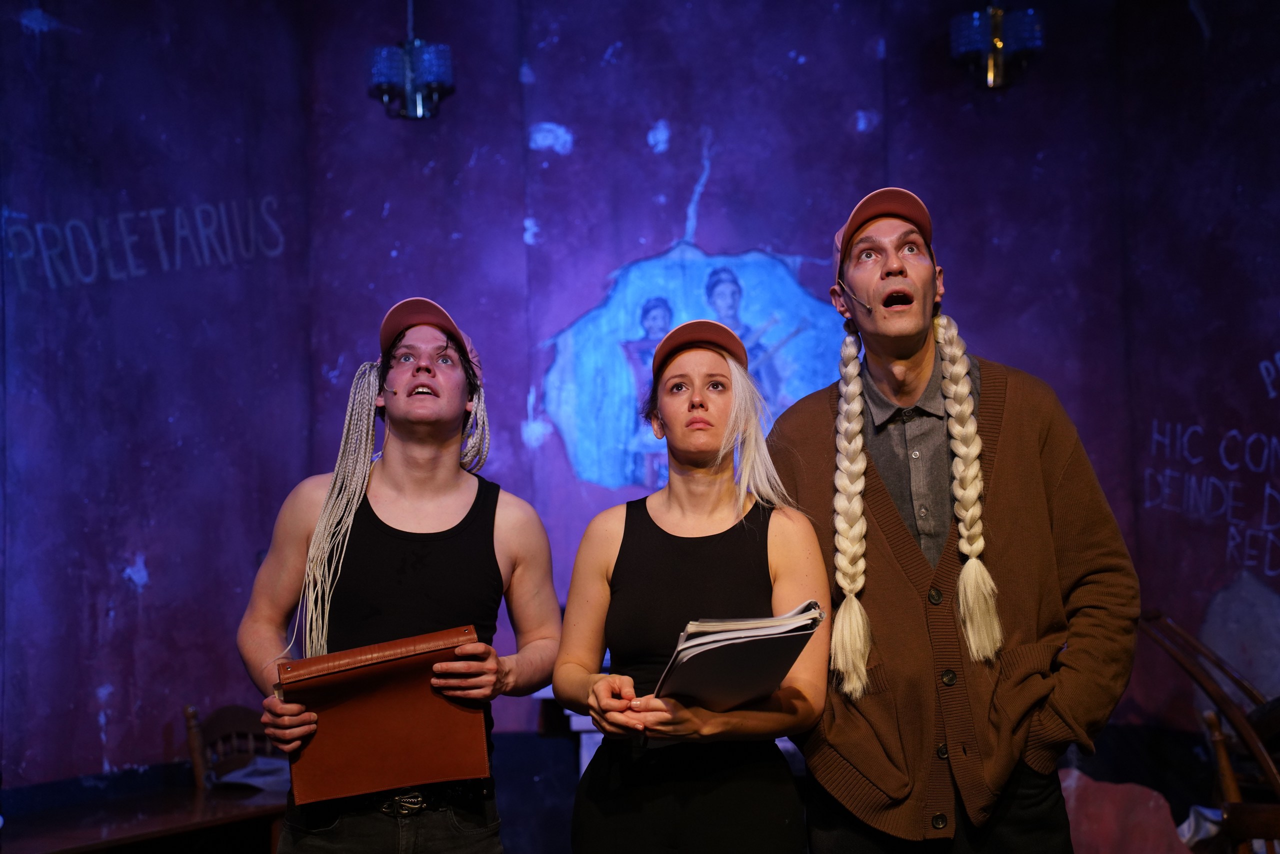 Хотели, видимо, поставить спектакль про спираль времени и повторяющиеся жизненные сценарии в разные эпохи, а сделали, скорее, капустник, который стремится казаться модно-молодежным. В который раз скажу — а все потому, что надо использовать внятную драматургическую основу, а не самим писать набор шуток…
