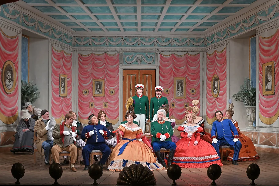 Но в этот хитро выстроенный симулякр вдруг проникают странные образы: то гусар небольшого роста Пушкин вальсирует с Хлестаковым; то официант, сильно напоминающий Гоголя, приносит кушанье. А в финале все замирают от ужаса: приехал настоящий ревизор. И в этой немой сцене где-то мелькает воздевший руки Мейерхольд.