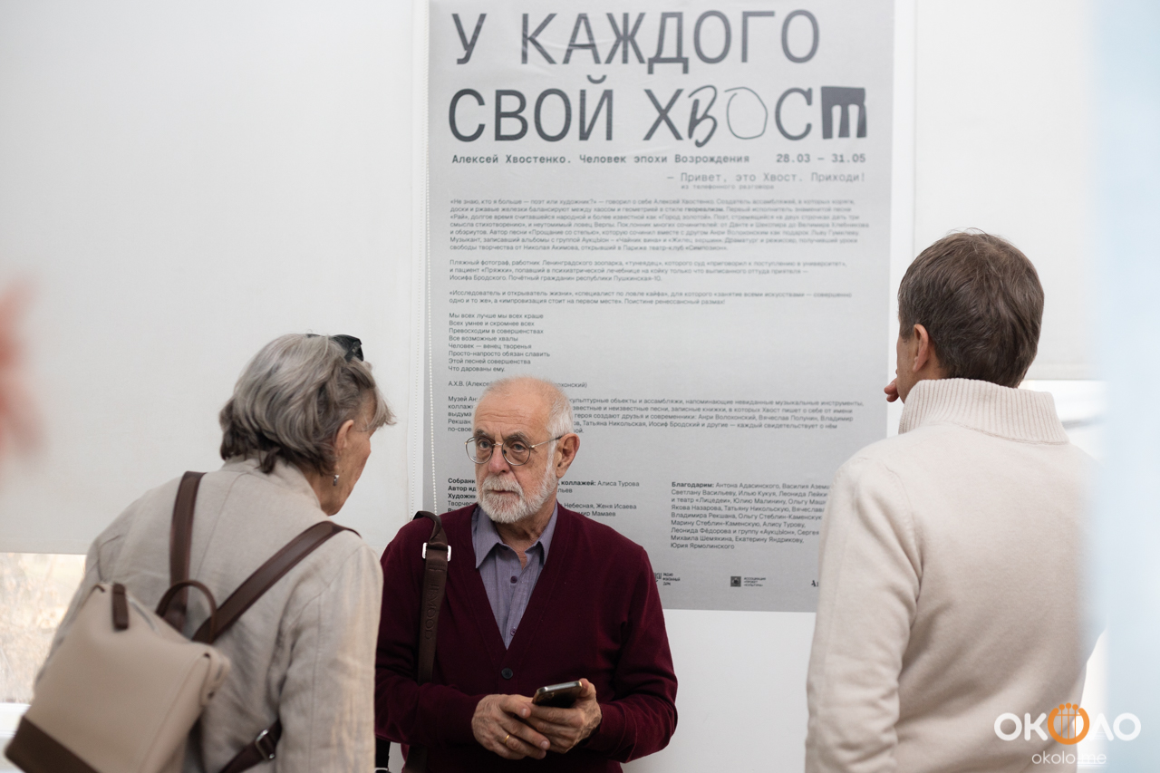 Скульптурные объекты, ассамбляжи, коллажи «Знаки зодиака», песни, фотографии и тексты художника и поэта Алексея Хвостенко представлены на выставке в Музее Ахматовой с 28 марта по 31 мая. Своими воспоминаниями с посетителями делятся друзья и современники поэта: Анри Волохонский, Вячеслав Полунин, Владимир Рекшан, Антон Адасинский, Леонид Фёдоров, Дмитрий Шагин. 27 марта выставку представили директор музея Юлия Малинина и куратор проекта Сергей Васильев. Инна Волкова («Колибри») и Виктор Санков («Полюса») исполнили несколько песен Алексея Хвостенко.