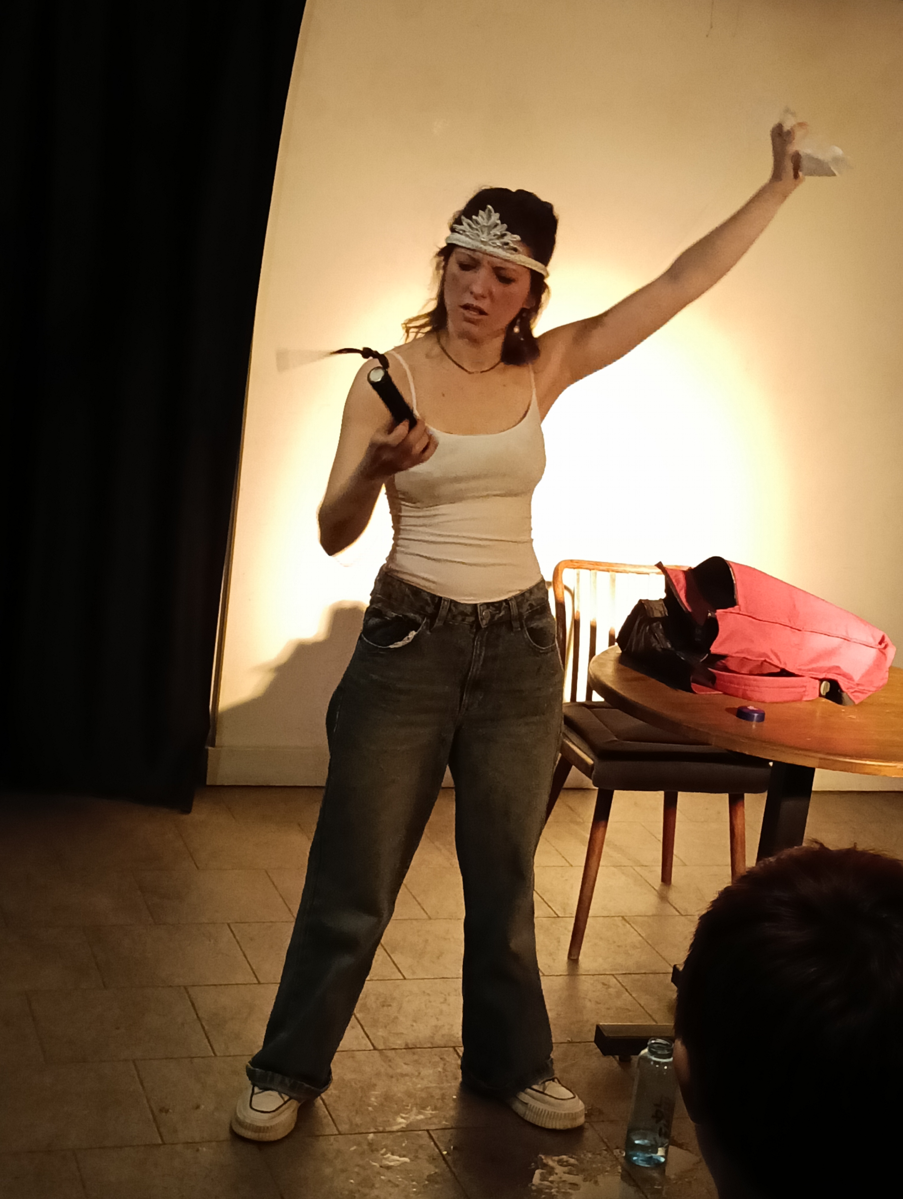 В Петербурге появился новый женский спектакль-стендап. Посмотрела 10 апреля прогон постановки «Ты в зеркало себя видела?» (режиссёр, драматург и актриса Настя Бешлиу. Настю я видела на сцене второй раз в жизни, после «Магды» Плохого театра), созданной в рамках лаборатории пространства «Где бабуля?», премьера состоится в понедельник 13 апреля в Подписных изданиях. Это честный и смелый монолог об актерской доле, мечтах и семейных взаимоотношениях.