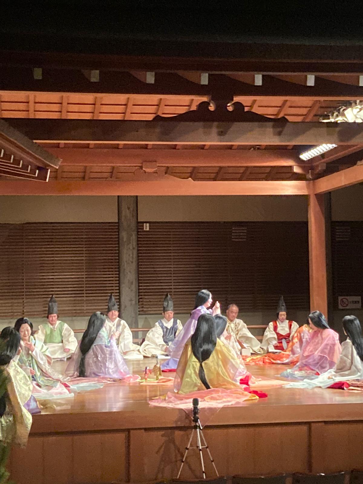 Труппа привезла спектакль, сюжет которого входит в золотой фонд литературы Японии — «Повесть о Гэндзи», роман эпохи Хэйан, рисующий эстетику жизни придворной аристократии Х века с ее увлечениями изысканной поэзией, утонченной музыкой и церемониальностью. В центре — противоречивый персонаж, принц Гэндзи и история его многочисленных романов. Именно женщины принца и их трагедии и стали главным смысловым центром. Кроме них на сцену вышли музыканты (мультиинструменталисты с органом сё, флейтой, буддийской чашей, расширенной ударной группой), буддийский монах и второстепенные персонажи — мужчины и женщины разных возрастов и сословий. Уникальность задумки в том, что самого принца Гэндзи публика так и не увидела. Перипетии всей его продолжительной жизни были переданы через монологи и диалоги, а также односторонние реплики (направленные в сторону принца) участников спектакля.