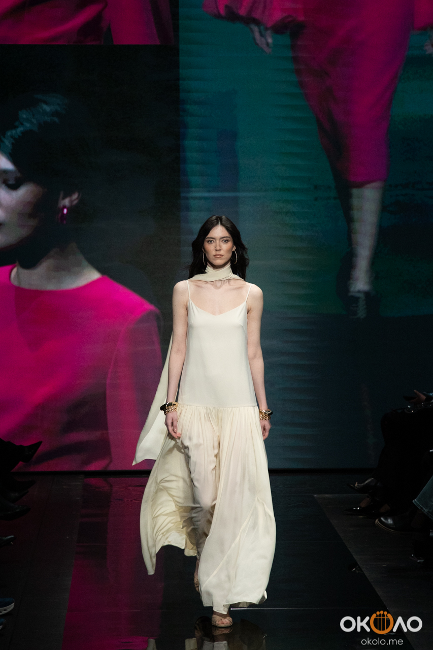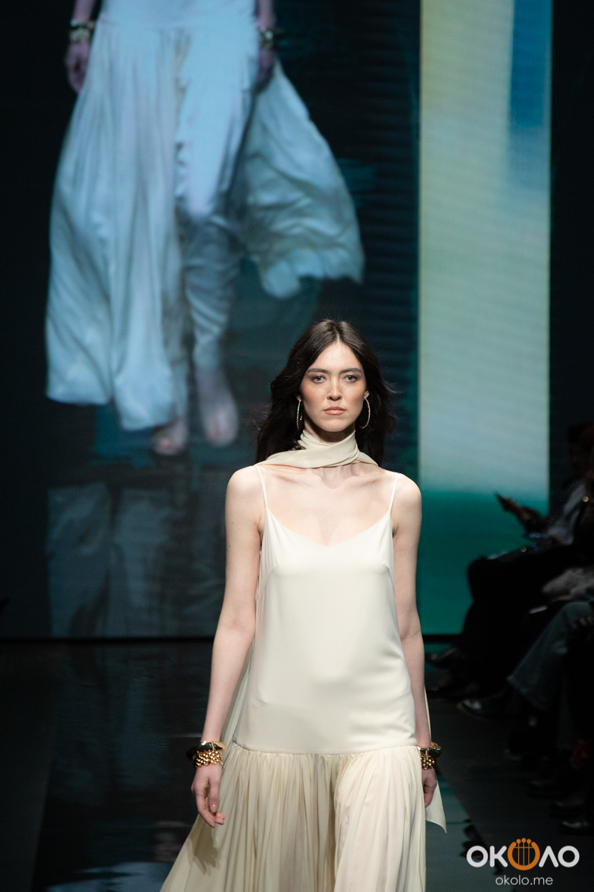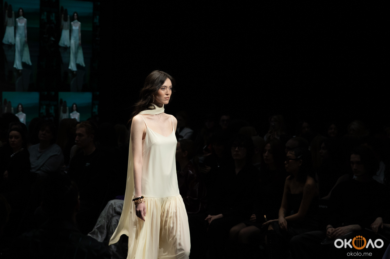 В анонсе бренд точно сформулировал свою концепцию — это «одежда как архитектура состояния женщины», где важны линия плеча, чистота силуэта, плотность ткани. И на подиуме эта идея считывалась достаточно ясно: вещи не перегружены деталями, они скорее про структуру и собранность, про выверенные формы и спокойную уверенность.