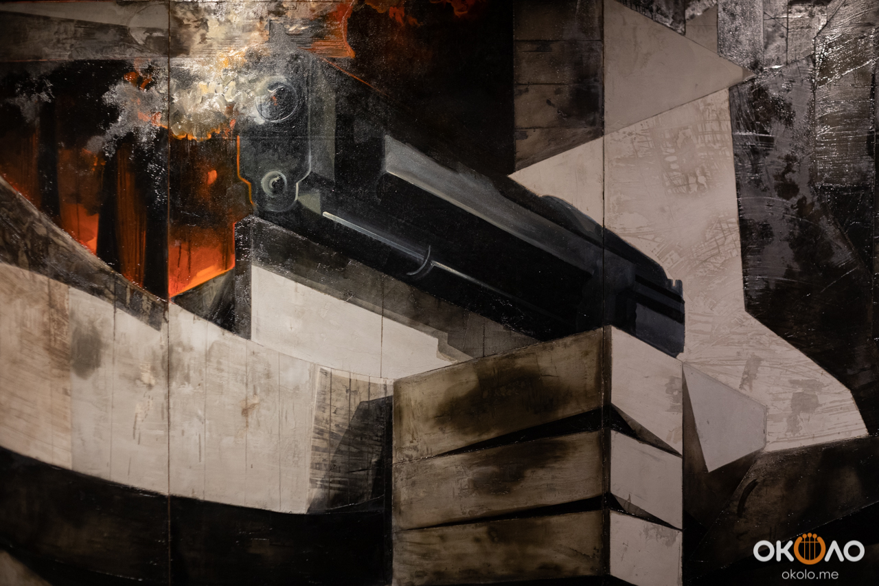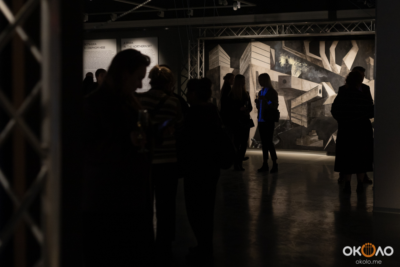 Павел Маркайтис представил художника гостям музея и обратил внимание публики, на то, что изображенные городские пейзажи не несут исключительно декоративный характер, но являются сильным выстраданным комментарием автора к трагедии, произошедшей в Мексике в начале 80-ых годов прошлого века. Из-за халатности радиоактивное вещество кобальт-60 попало на свалку металлолома, который в дальнейшем использовался для строительства дешевого жилья. В результате опасные дозы излучения получили тысячи людей по всей стране. В живописном цикле «Вспышка в северном небе» Нестор Хименес использует бетон и натуральные кобальтовые пигменты, призывая всех нас задуматься об обратной стороне прогресса.