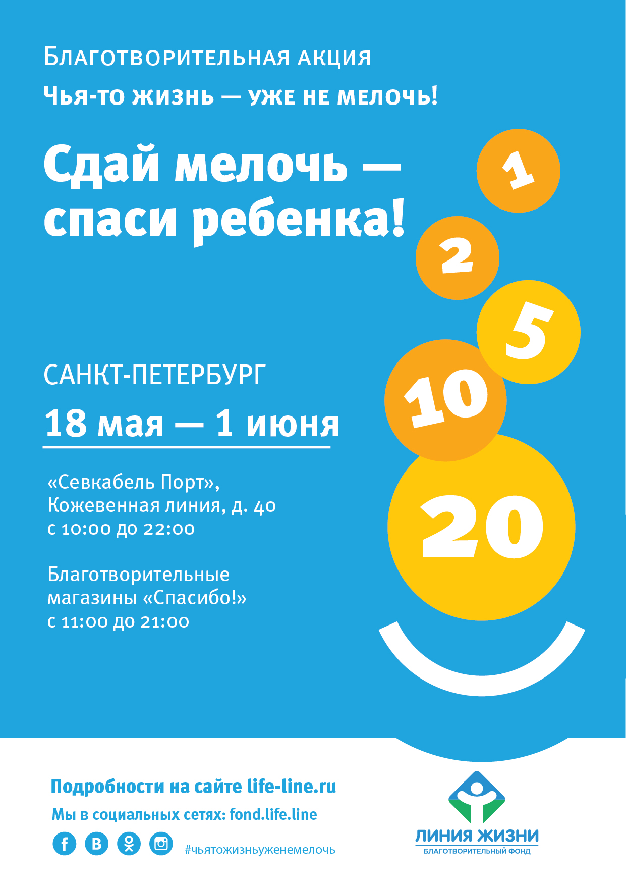Благотворительный фонд «Линия жизни» готовится к юбилейному старту сбора средств в рамках акции «Чья-то жизнь — уже не мелочь!». Фонд «Линия жизни» проводит акцию с 2009 года. За это время удалось собрать 23 755 090,60 ₽ и помочь 84 тяжелобольным детям стать здоровыми, а их родителям — счастливыми! В мае состоится 20-я по счету благотворительная акция фонда «Линия жизни» «Чья-то жизнь — уже не мелочь!». Суть акции очень проста: почти у…
