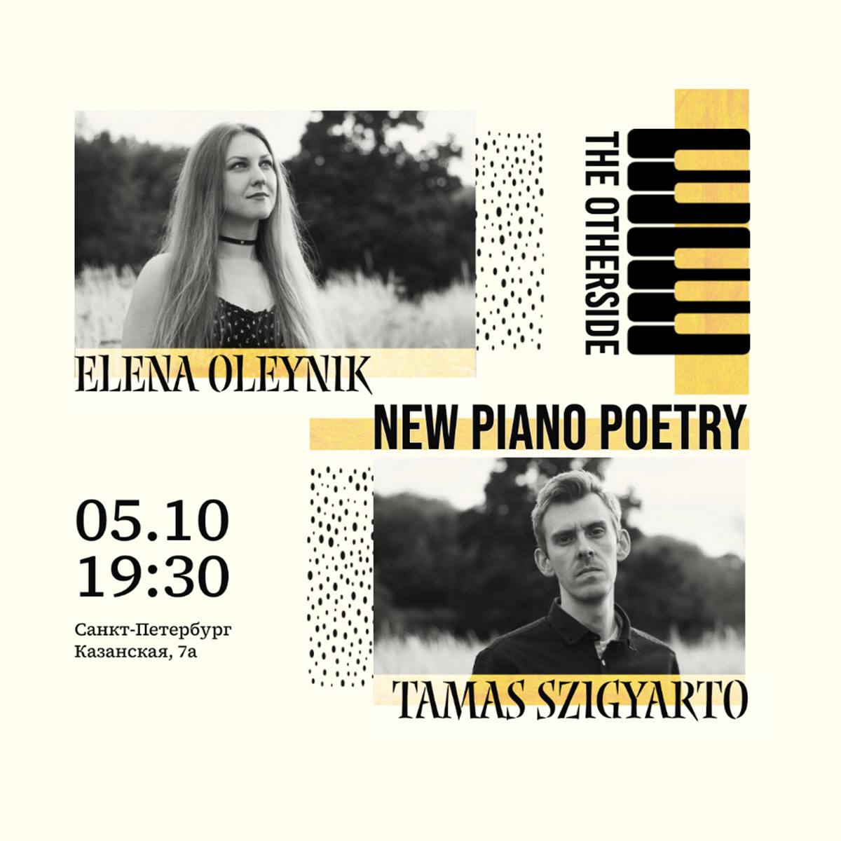 Время отрешиться от мелкой повседневной суеты и изматывающей драмы реальности: вечером в среду 5 октября погружаемся в атмосферу вдохновляющих впечатлений. В гостиной “The Otherside” на Казанской ул., 7, нас ждет камерный концерт фортепианной музыки Елены Олейник (Oknovokean) и Томаша Сидярто. Oknovokean - это авторский современный классический инструментальный дуэт: Елена Олейник - фортепиано, Анна Иванова - альт. Сами авторы описывают свои композиции как поток эмоций, переживаний, рефлексии…
