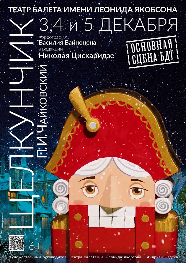 3, 4 и 5 декабря Театр балета имени Леонида Якобсона на основной сцене БДТ представит премьеру балета «Щелкунчик» в хореографической редакции народного артиста России Николая Цискаридзе. «Щелкунчик» Петра Ильича Чайковского — настоящая драгоценность…