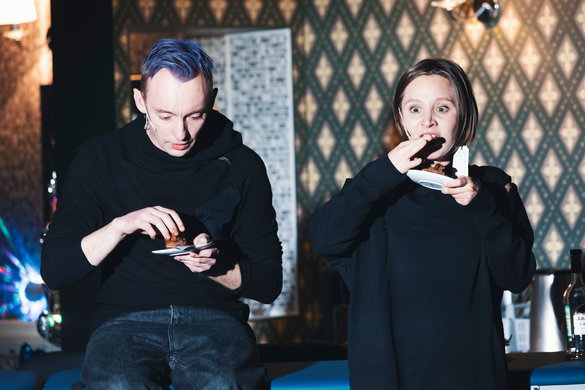 25 и 26 ноября во флигеле театра «Суббота» раздавались страшно громкие звуки, лампочки слепили глаза, а каноны сценографии и мизансцены были искажены ради того, чтобы погрузить зрителя в темный подвал подсознания вневременного и…