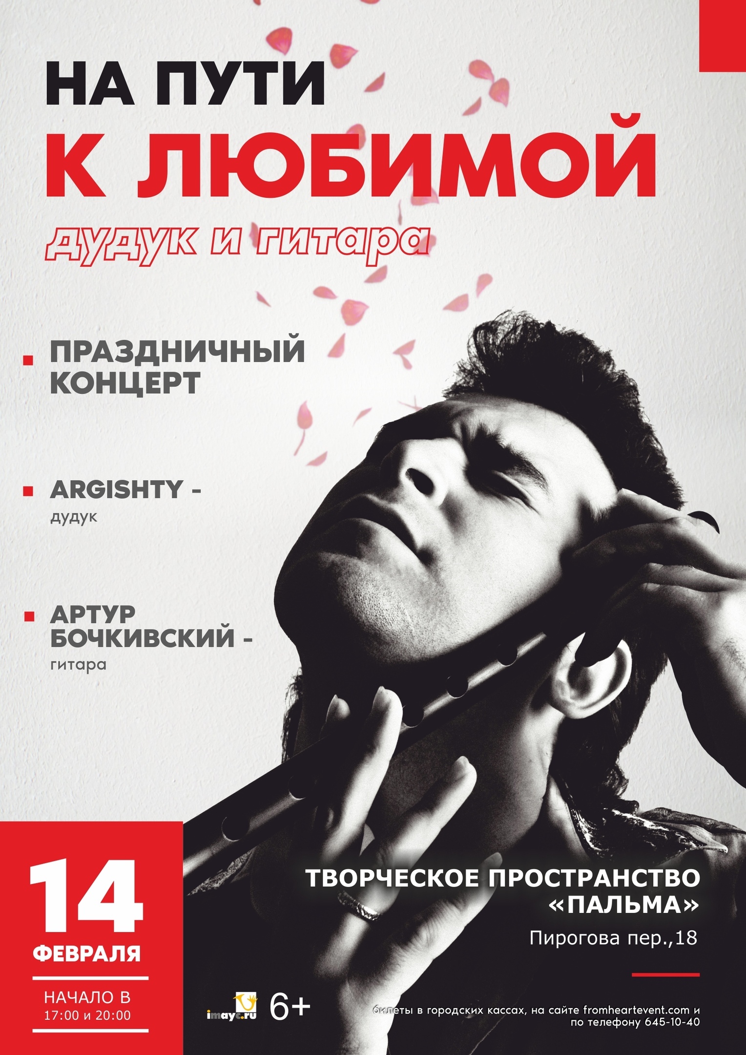 Подробнее14 февраля в атмосферном зале Особняка Общества «Пальма» состоится концерт при свечах «Дудук и гитара. На пути к любимой». Зрительный зал будет наполнен теплым светом десятков свечей, а тембр дудука будет сплетаться со звучанием…