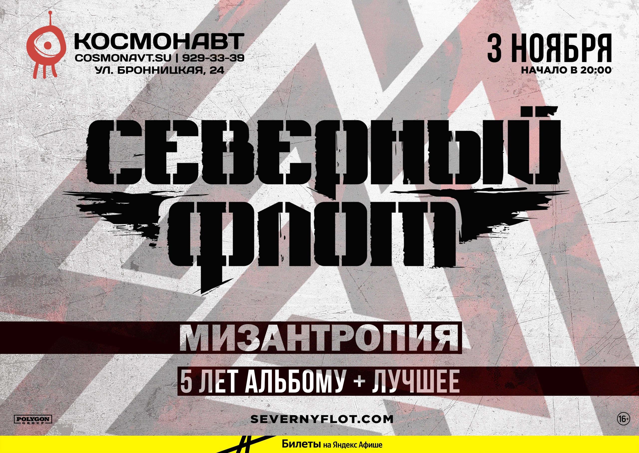 3 ноября группа Северный Флот даст большой осенний концерт «Мизантропия. 5 лет альбому + лучшее», на котором не только отметит 5-летний юбилей одного из ключевых альбомов, но также исполнит свои лучшие хиты и…