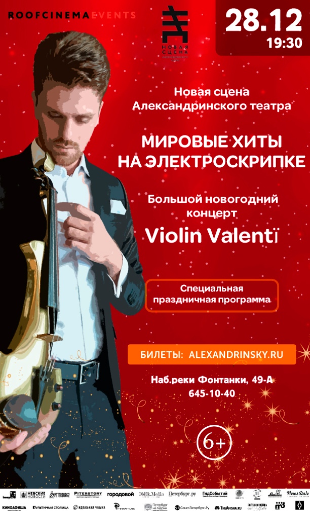 Подробнее28 декабря на Новой сцене Александринского театра пройдет праздничный концерт "Мировые хиты на электроскрипке" от популярного музыканта Violin Valentï. Большой концерт мировых хитов в исполнении электроскрипки пройдет на Новой сцене Александринского театра 28…