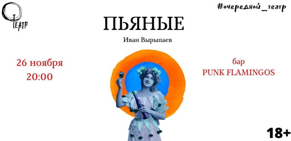 Читаю анонс: очередной театр ставит пьесу любимого драматурга Ивана Вырыпаева “Пьяные” в тайном баре в центре Питера. Ожидание: ты в элитном сообществе театралов и журналистов пьешь игристое в баре не для всех и…