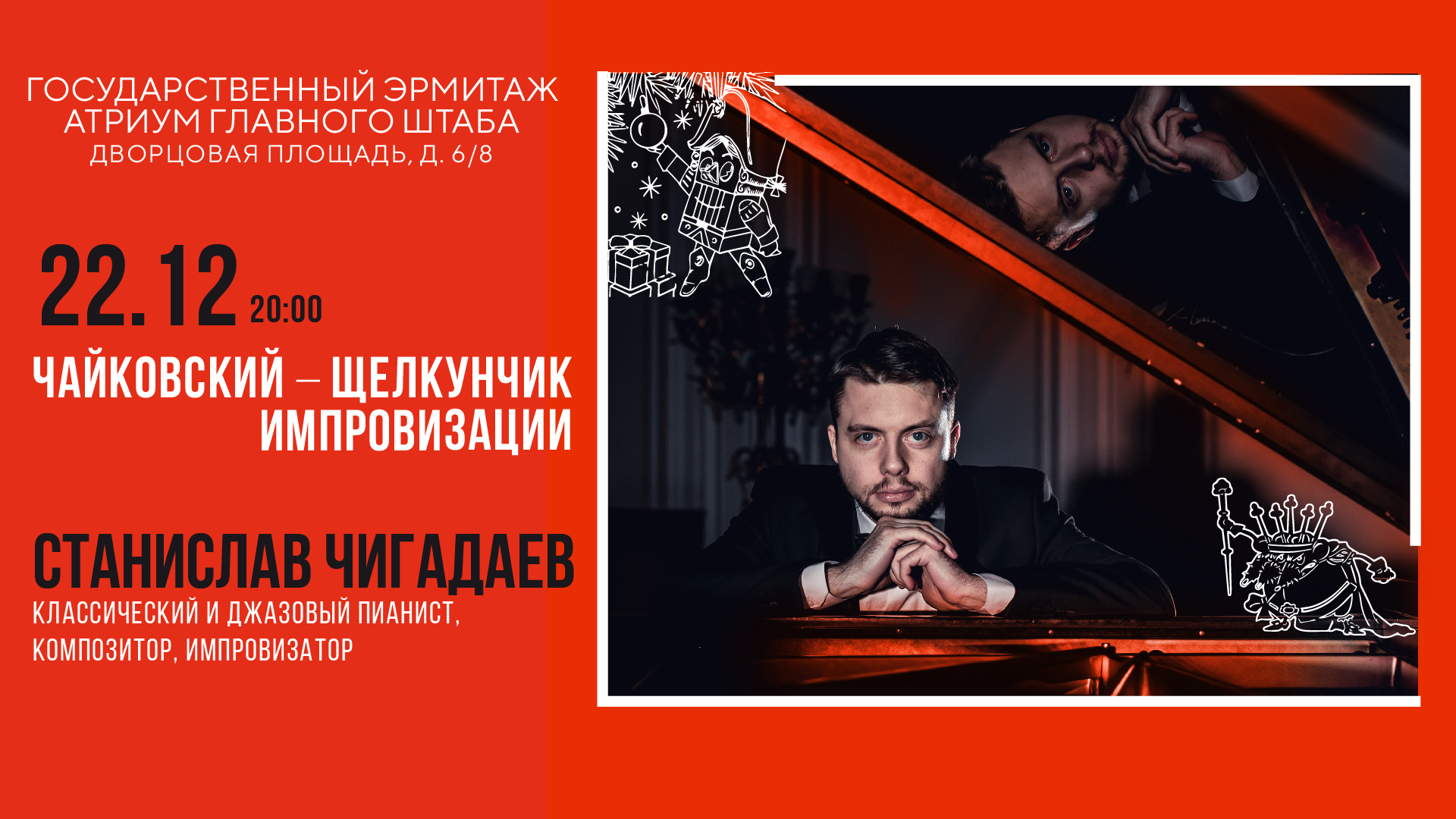 22 декабря пианист Станислав Чигадаев исполнит в Атриуме Главного штаба Эрмитажа программу «Чайковский - Щелкунчик - Импровизации». Вы услышите импровизации на темы из самого знаменитого «новогоднего» балета Петра Ильича, а калейдоскоп трансформаций знаменитых…
