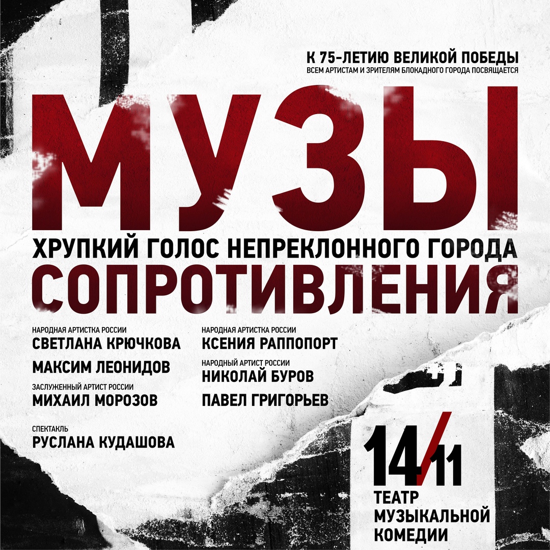 14 ноября, только один вечер, в театре Музыкальной комедии – проект Руслана Кудашова «Музы сопротивления: Хрупкий голос непреклонного города». Этот спектакль – посвящение артистам блокадного Ленинграда. Полтора часа эпизодов реальной блокадной жизни глазами…