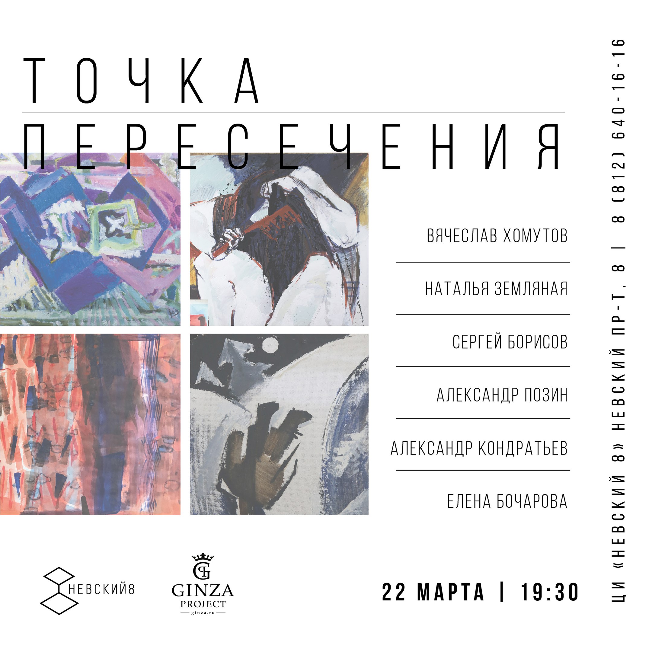 Открытие выставки художников-восьмидесятников «Точка пересечения» состоялось  под ритмы джаза 22 марта в ЦИ Невский 8. В экспозицию вошли работы Вячеслава Хомутова, Натальи Земляной, Сергея Борисова, Александра Позина, Александра Кондратьева, Елены Бочаровой. Куратор выставки «Точка…