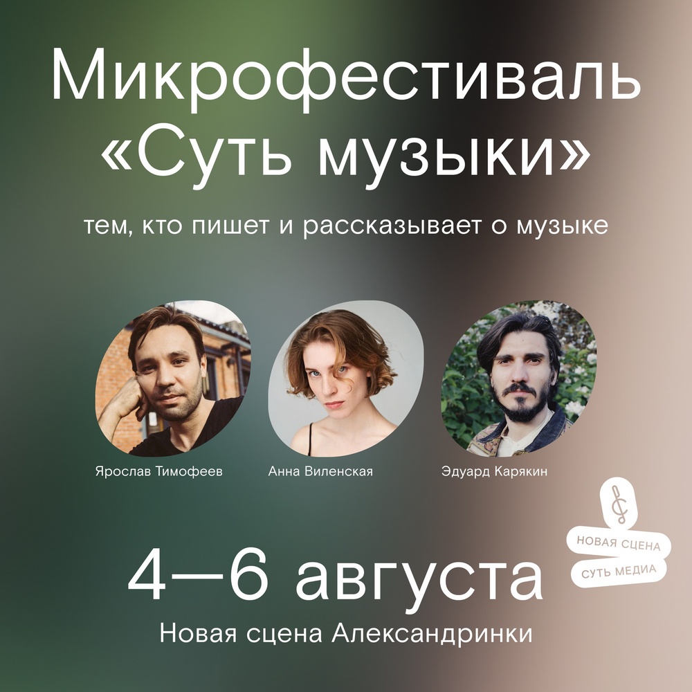 С 4 по 6 августа на Новой сцене Александринского театра при поддержке Союза композиторов России представляем микрофетиваль нового подхода к музыкальной коммуникации «Суть музыки», в программе которого три концерта и четыре лекции для тех, кто любит…