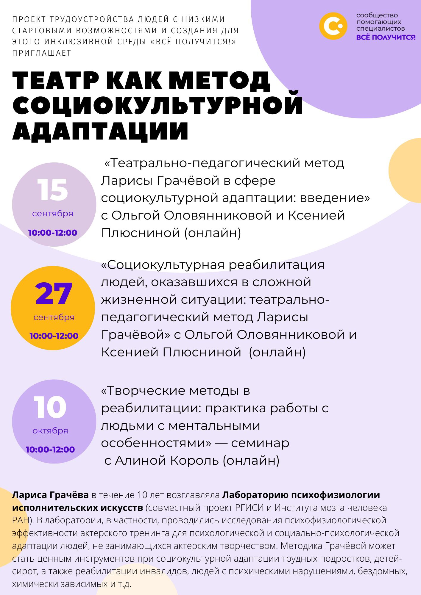 Стартует новый небольшой курс от СХТ, посвященный театру как методу помощи людям из уязвимых групп.В последние годы социальный театр стал важной частью социокультурной адаптации трудных подростков, детей-сирот, а также реабилитации инвалидов, людей с…
