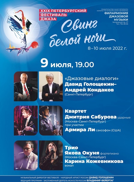 С 8 по 10 июля в Петербурге в 29-й раз пройдет фестиваль джаза «Свинг белой ночи». Концерты пройдут 8 и 9 июля в Филармонии джазовой музыки, а 10 июля в 13:00 состоится гала-концерт…