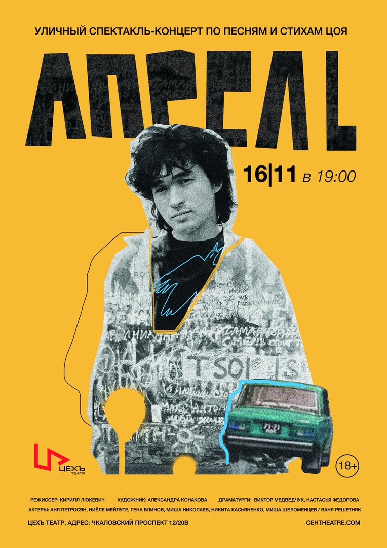 16 ноября в 19:00 состоится ПРЕМЬЕРА уличного спектакля "АПРЕЛЬ" по песням и стихам Виктора Цоя. "Мы дети, выросшие на твоих песнях, которых ты не дождался".Спектакль-концерт с песнями, танцами и допингом с использованием текстов…